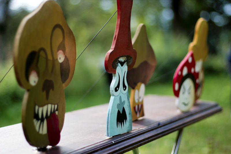Par exemple, quand nous avons imaginé le jeu « le corbeau, le renard et l'arbalète », nous avons choisi comme cibles des fruits plutôt que des animaux. Mieux, si par erreur un joueur touche le corbeau ou le renard, il perd des points !! Le message est clair...
